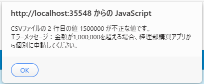 通常、リストビューに入力規則が設定されている場合、インポートコマンドは検証を行ってからインポートを実行します。検証エラーが発生すると以下のようなポップアップが表示され、インポートがキャンセルされます。