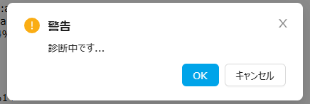 システム環境診断の実行はサーバーに負荷をかけるため、多重実行ができないようにサーバー管理ポータルで制御されています。「診断開始」または「再生成」ボタンを押下時に以下のメッセージが表示される場合、別のユーザーによる診断が実行中のため診断がキャンセルされています。時間をおいて再実行してください。