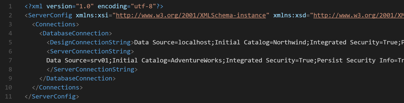 2 ServerConnectionString要素にForguncy Server上で使用する外部データベースの接続文字列を設定します。